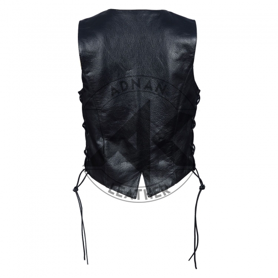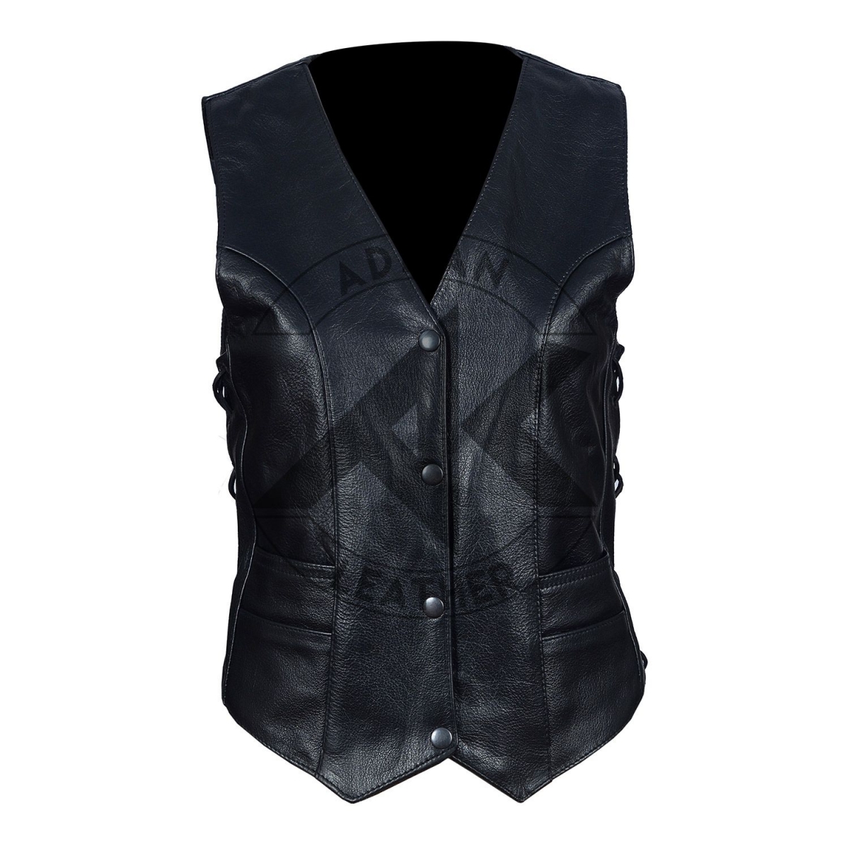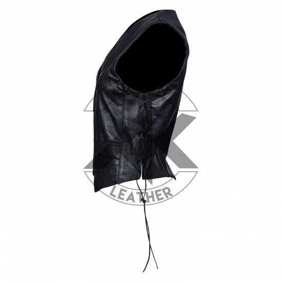 Leather Ladies Classic Black Leather Vest with Side Lace