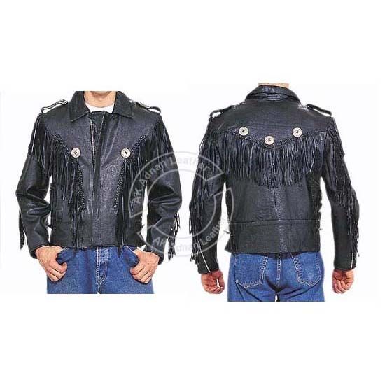 Black Leather BonJovi-Style Jacket with Side Laces, Fringe, Braid and Zip-Out Lining