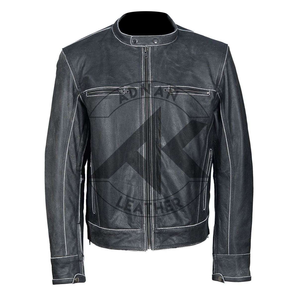 Made in Distressed Grey Leather Jacket with Full Sleeve Zip Out Thermal Liner